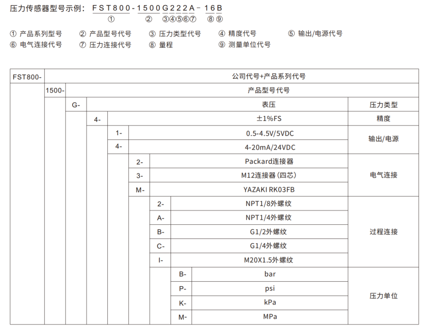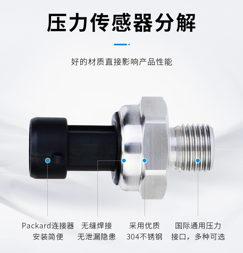 压力传感器常用的电气接口有直接出线、Packard连接器、M12连接器、赫斯曼。
