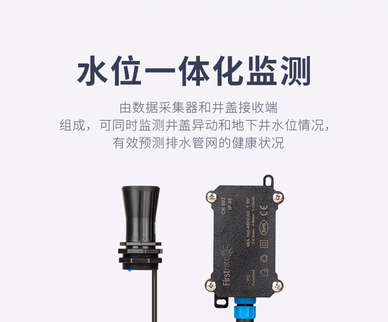 由数据采集器和井盖接收端组成,可同时监测井盖异动和地下井水位情况,有效预测排水管网的健康状况 -