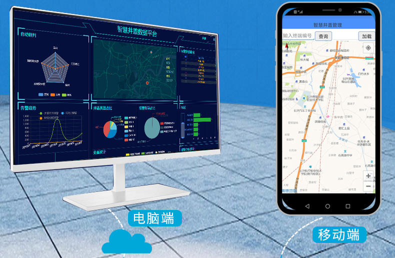 一种安装在井盖上的智能设备,通过传感器实时监测井盖状态(如位移、倾斜)和井下环境(如水位、气体浓度),并将数据无线传输至管理平台。