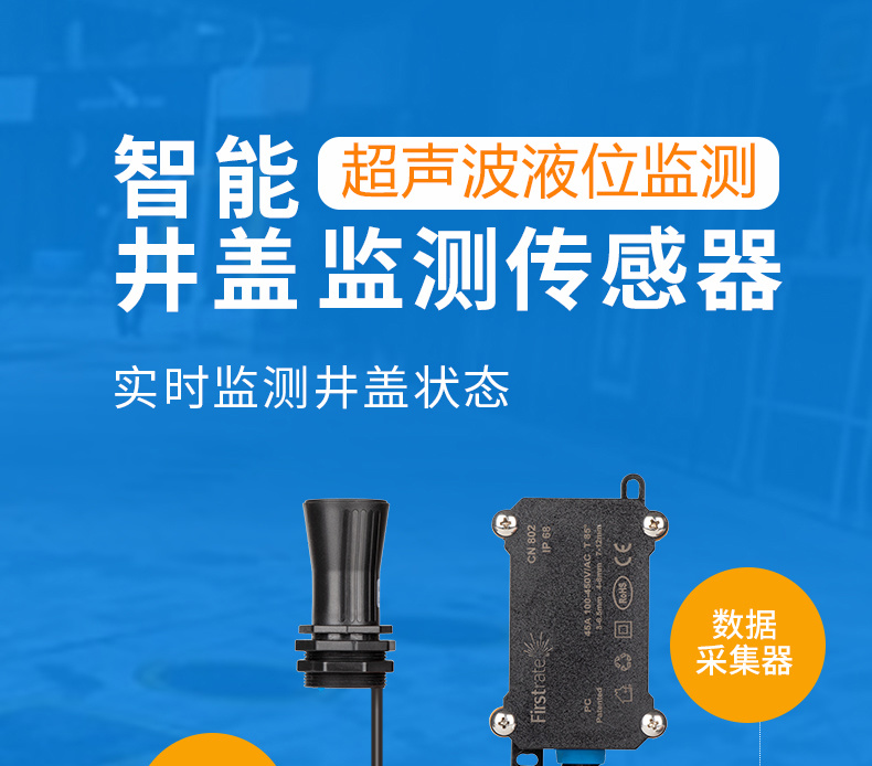 应用范围: 井盖传感器(超声波液位)采用超声波技术、NB-IOT通讯技术、2.4G通讯技术,自动获取当地天气预报,调整采集频次和预警值,实现对窨井水位情况的实时监测,管理部门可通过智能井盖监控云平台、手机APP等方式实时监测窨井水位情况,有效的预测排水管网的健康状况,为防洪防涝提供决策性依据。
